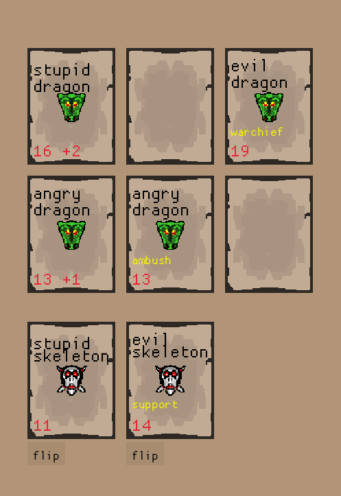 For each column, the card of the player and the card of the AI are put face-up if needed, and compared.